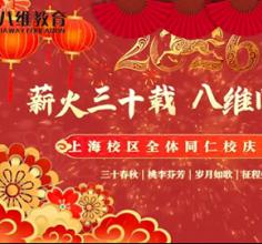 上海校区祝贺八维教育集团三十周年生日快乐,秉教育初心三十载,承创新使命育栋梁,薪火相传启新程,匠心筑梦向未来。