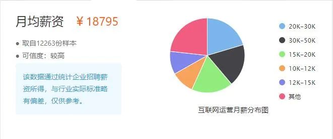 发展前景好关于这一点,我们可以从各平台发布的招聘信息来判断这个岗位的需求量和薪资水平。目前从猎聘的数据来看,运营人员平均薪资已经达到18795元,而随着年限和工作经验的积累,从运营专员到初级运营、中级运营以及高级运营、运营主管再到运营总监,薪资可达50K。
