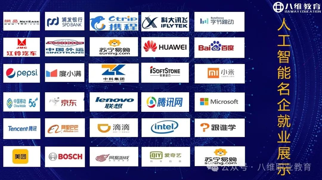 高质量offer不断。八维始终把学生就业放在首要目标,将就业目标贯穿教学始终。人工智能专业工作方向,薪资高、前景广,是时代发展的主要方向。2024年在就业大环境不乐观的前提下,八维人工智能专业学子仍然取得了骄人的成绩。这一方面反映出人工智能行业持续利好,岗位需求较多;另一方面在八维人工智能专业的赋能下,学子们在激烈的就业市场上不断“出圈”,优质offer不断!