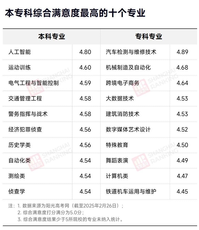 在本科类专业中,人工智能专业以4.8的评分位列榜单第一位。