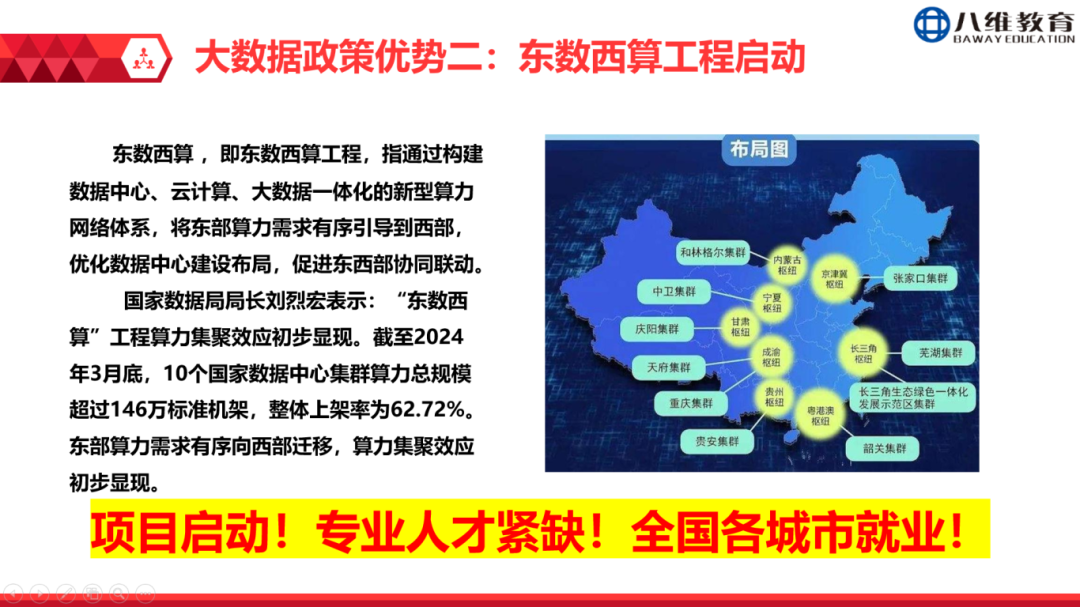 另一方面是科研与资金大力支持。2025年4月国家数据发展研究院成立,汇聚专家资源推动技术突破;“东数西算”工程在西部建立数据集群,直接带动大数据就业岗位翻倍增长。