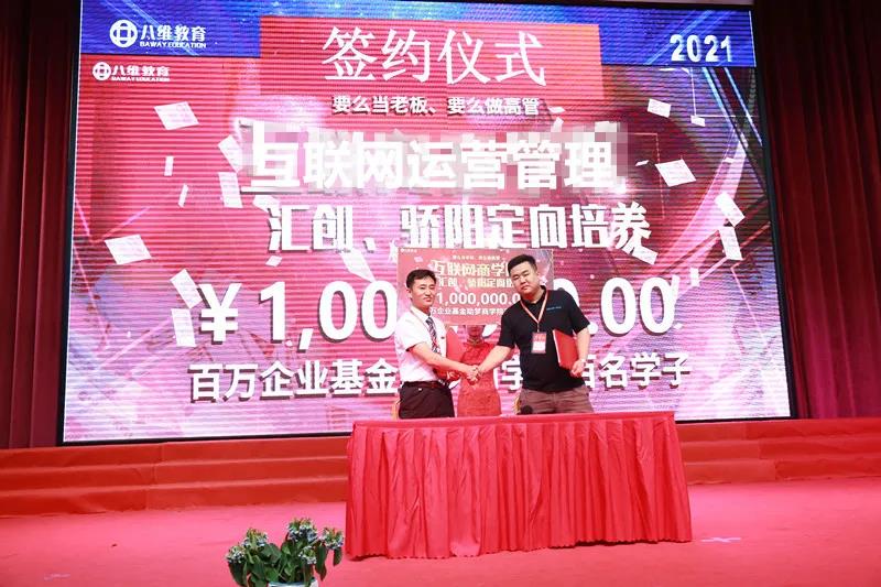 特别是汇创骄阳数字科技有限公司,拿出一百万成立人才培养基金,捐资助力100名学生进行学习,开启企业定制定向培训班,为学生创造直接就业的绿色通道。