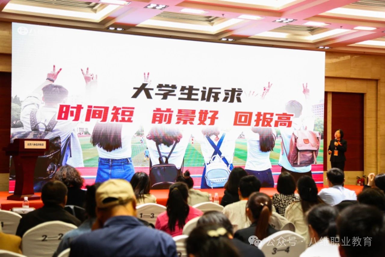 在分享中,马总系统阐述了八维教育“创新教育、引领未来”的办学使命。她回顾八维自创立以来,始终致力于通过教育改变普通家庭孩子的命运轨迹。其中,大学生短期精英班通过五个月的高效培训,帮助数百名学子实现学历与能力的双重突破,实现快速就业,找到人生的方向,便是得益于八维教育的好课程、好服务、好口碑。
