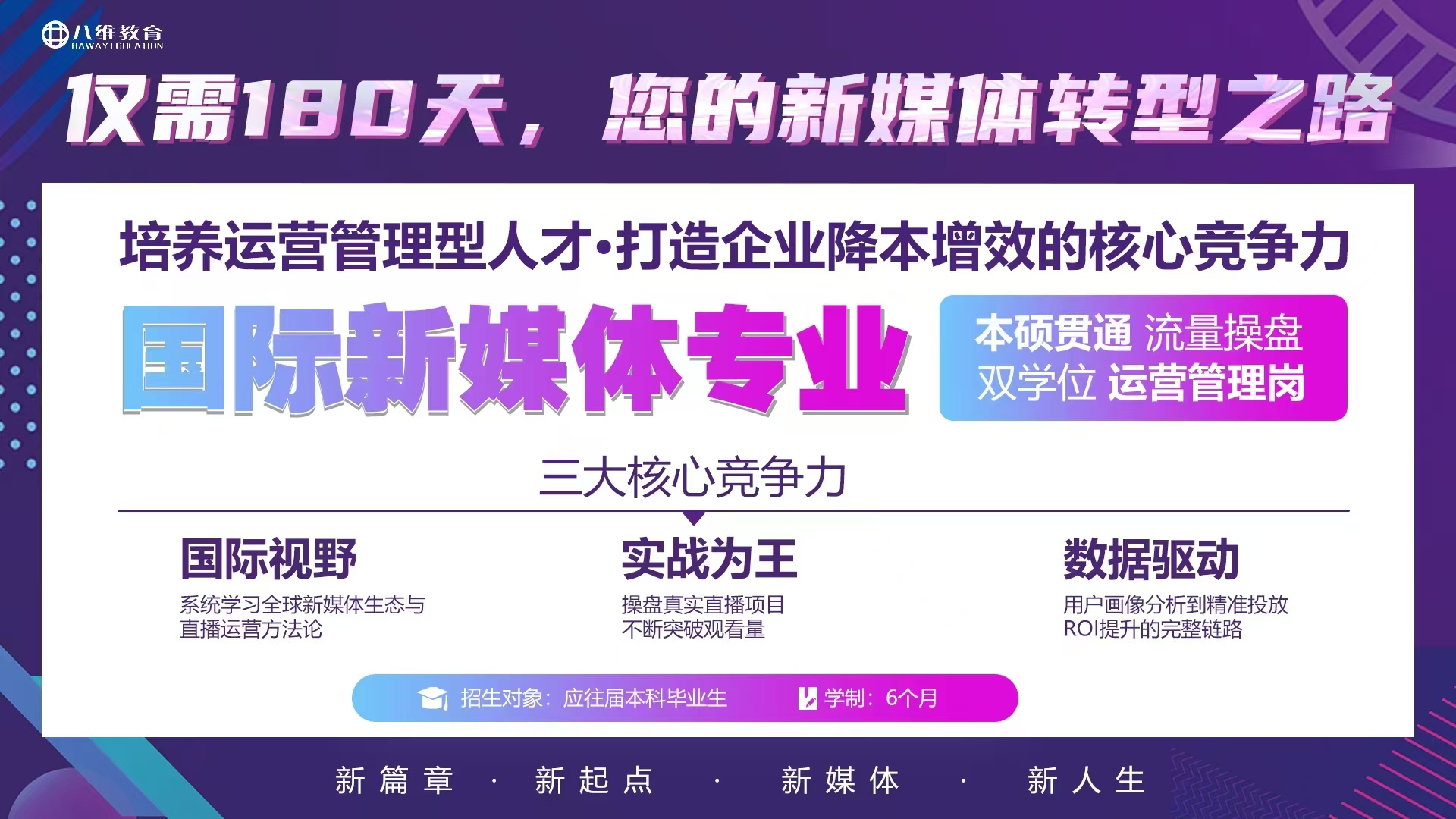 在这个信息爆炸的时代,新媒体运营已然成为炙手可热的行业。你是否渴望踏入这个充满机遇与挑战的领域,却因不知从何开始而犹豫不决?现在,八维教育为你提供绝佳机会 ——5 天免费试听新媒体运营课程,带你全方位解锁新媒体运营的奥秘,从内容创作到剪辑、拍摄技巧,再到流量变现,一站式掌握核心技能,快速开启新媒体时代的辉煌征程!