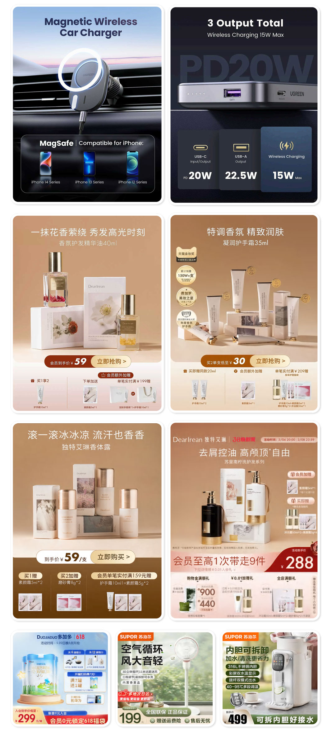 全套电商设计图:品牌主视觉KV设计、高转化商品详情页、多场景SKU应用图、吸睛直播间背景与贴片、高点击率钻展推广图。