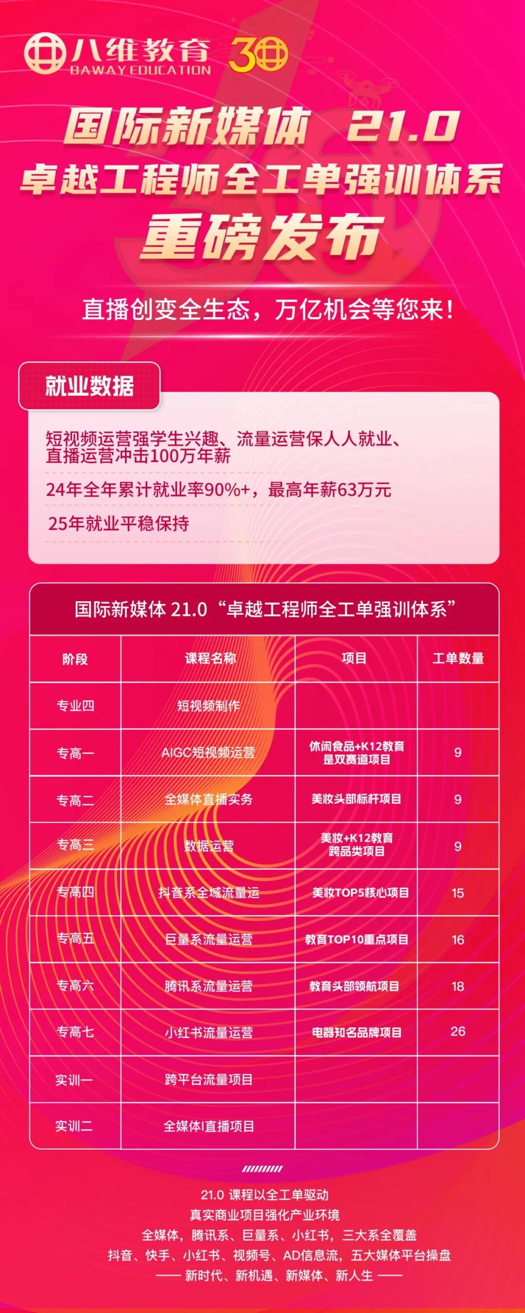 确保学生精通3个及以上媒体平台核心技术,练就硬核能力,提升就业稳定性。