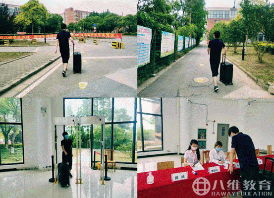 报到前还要再通过一次红外测温门体温检测。