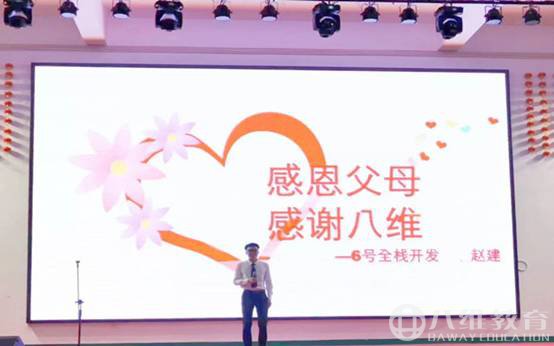 所以八维感恩奉献教育的第一步,就是教学生从感恩父母做起。从感恩父母衍生推及到感恩他人,感恩团队、感恩社会,感恩国家,有感恩自然就会有奉献。八维的学生,正值人生观、价值观、世界观形成的重要时期,在迈向职场的前期,让他们拥有健康向上的人格和社会责任意识至关重要。