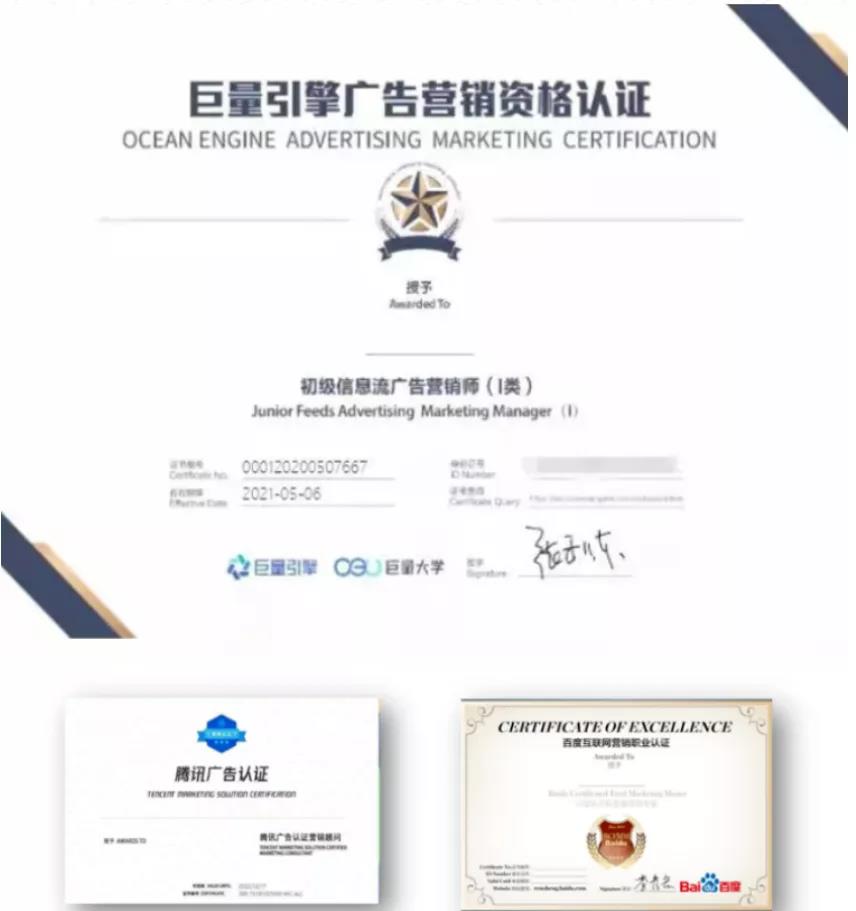 学生在校期间,老师会指导学生考取百度、腾讯、今日头条三大顶级互联网公司的技能认证,提高学生技能含金量,增加学生优质就业“砝码”。