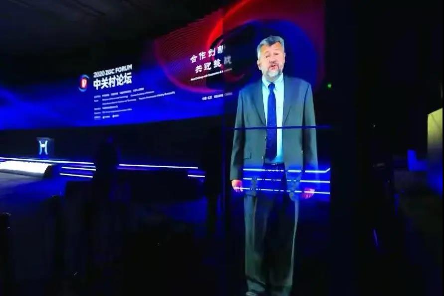除了这些带来未来感的高科技,更神奇的还有远程嘉宾演讲时所利用到的AR、VR技术,通过虚拟现实技术的参与,在加上后期特效的表现,远程演讲嘉宾的视频,几乎达到了现场裸眼3D的效果!